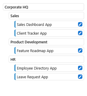 Applications inherit shared resources across teams, departments, or clients. This makes large-scale rollouts consistent and sustainable without increasing complexity.